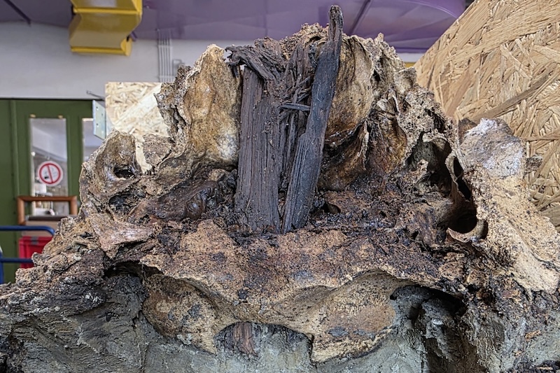 Buluntu, kırılgan yapısı nedeniyle toprak bloğu içinde çıkarılarak Gottorf Şatosu Arkeoloji Müzesi’ne götürüldü. Burada yapılan incelemelerde kafatasının içinde çam ağacından yapılmış bir kazığın kalıntıları fark edildi. Ardından gerçekleştirilen bilgisayarlı tomografi taramaları, kafatasının arka kısmındaki doğal açıklıktan bir kazığa geçirilmiş olduğunu kesin biçimde ortaya koydu.